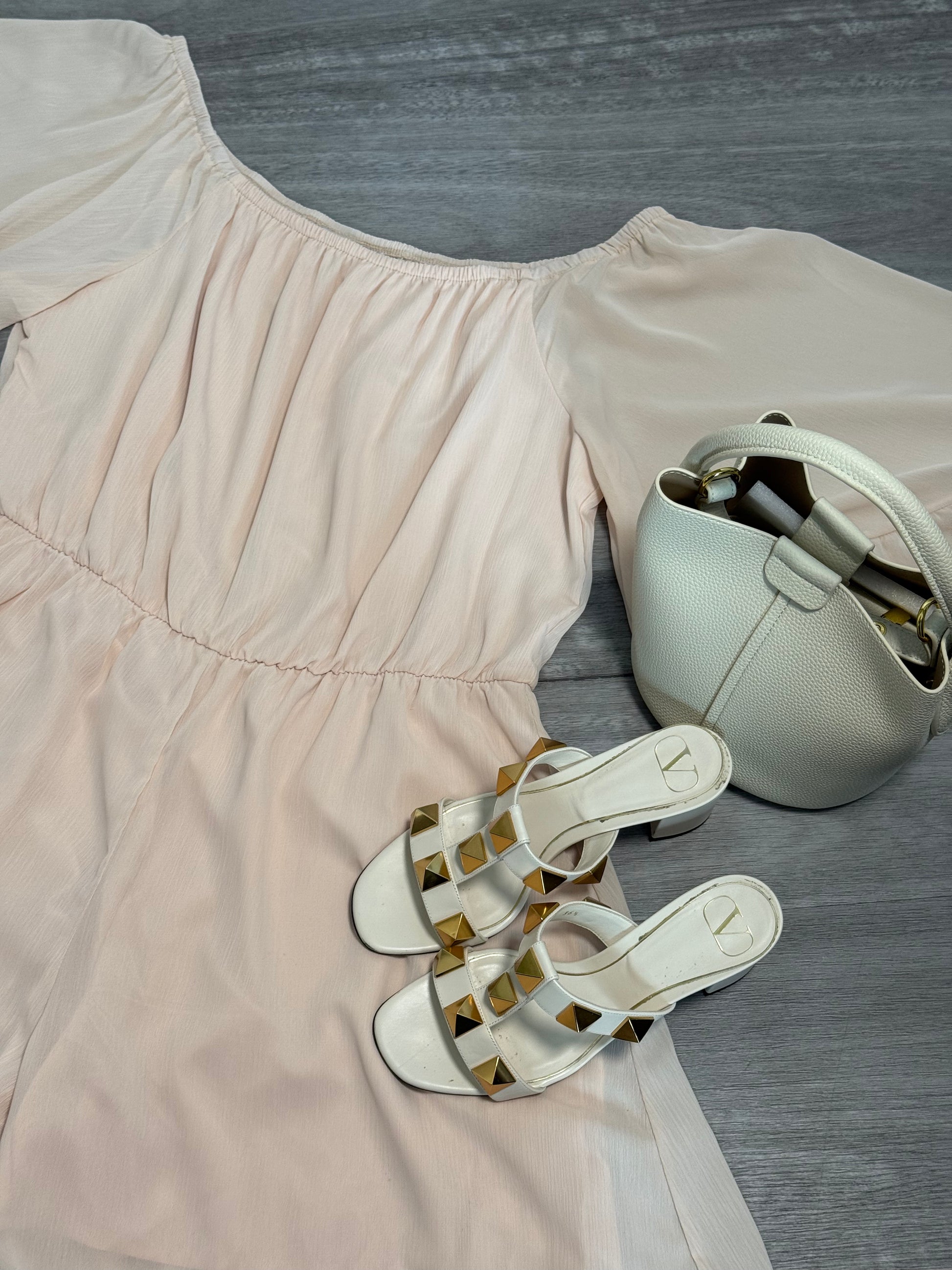 The Amelie Romper features charming bell sleeves that add a fun, flirty twist to your look. Perfect for twirling or a casual day out, this playful design blends comfort with a touch of whimsy, making it a delightful choice for warm-weather adventures.