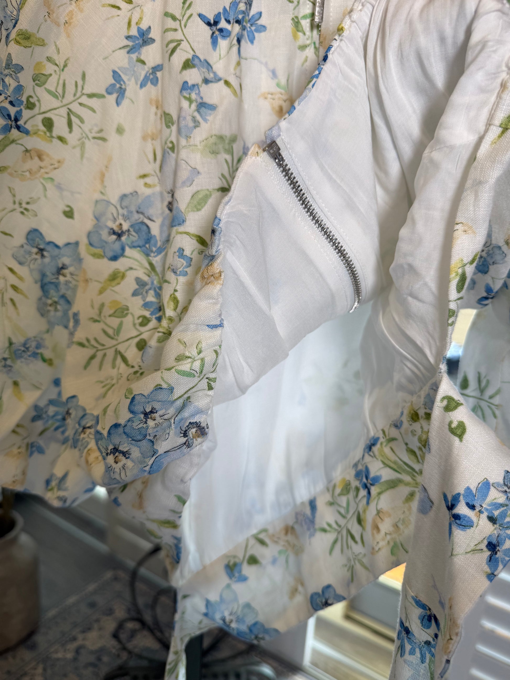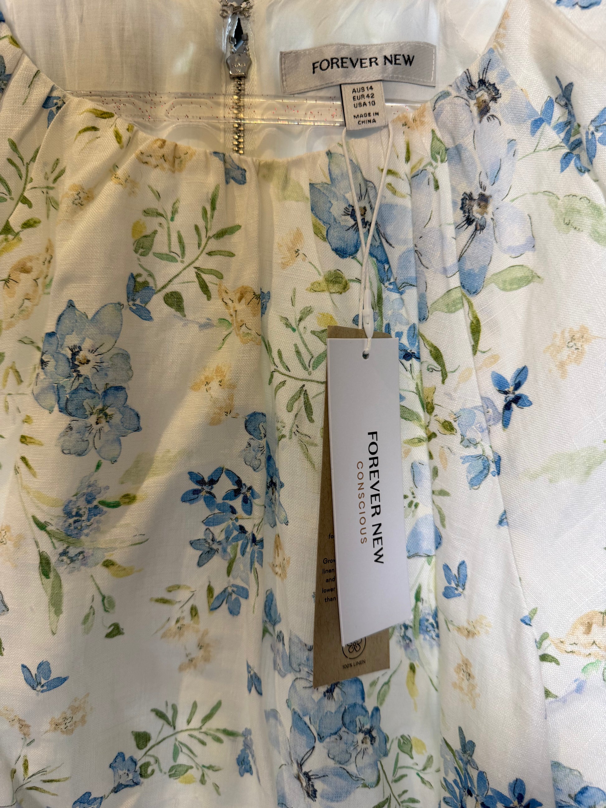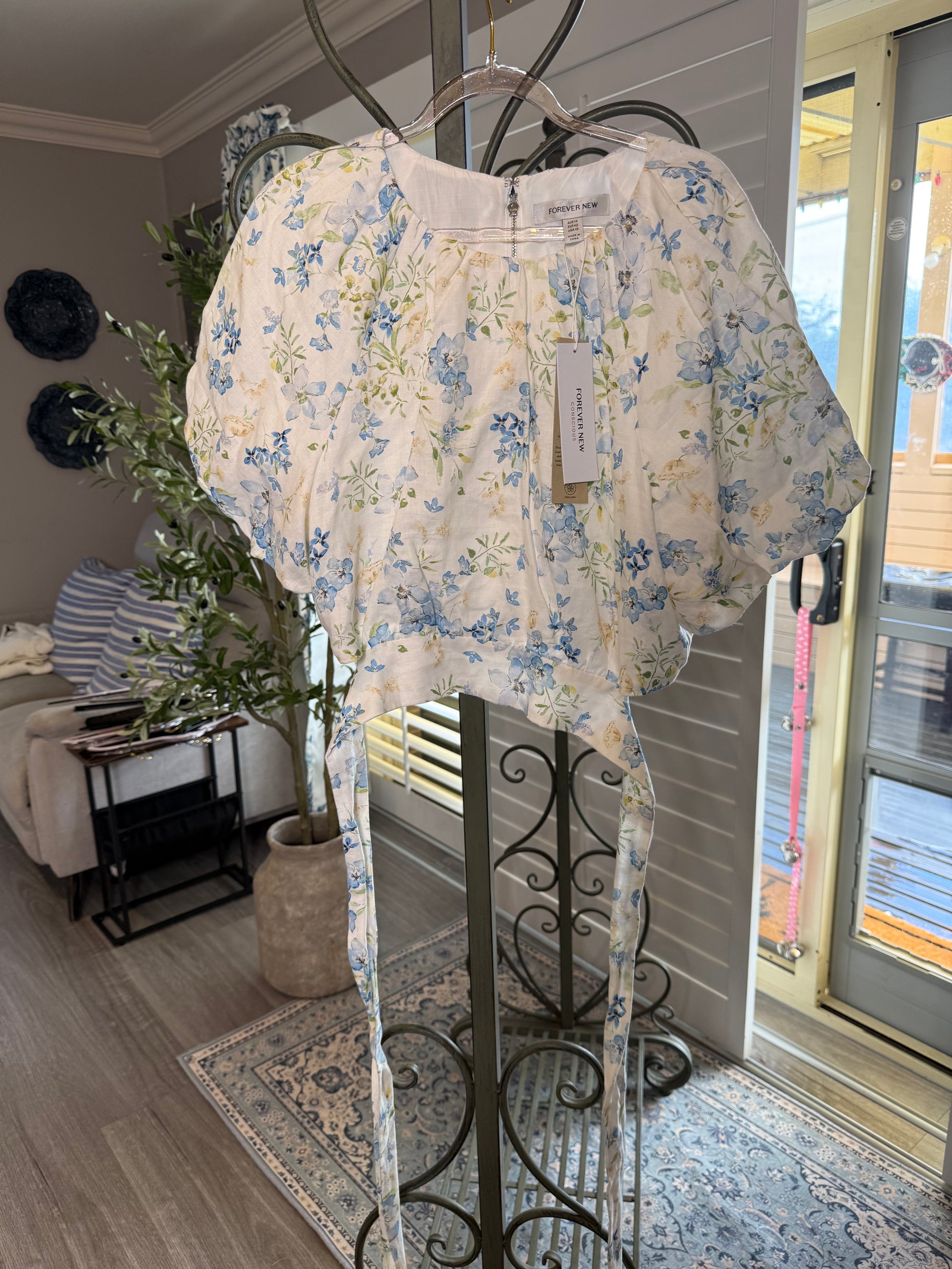 The Forever New Cropped Top blends comfort and style with its breathable floral linen fabric. Featuring a delicate lining for a smooth feel, this short top ties at the back for a flattering fit and easy adjustment. The discreet zip closure at the back adds a streamlined finish, making it perfect for effortless daytime elegance. Elevate your wardrobe with this versatile, chic piece designed to keep you cool and confident.